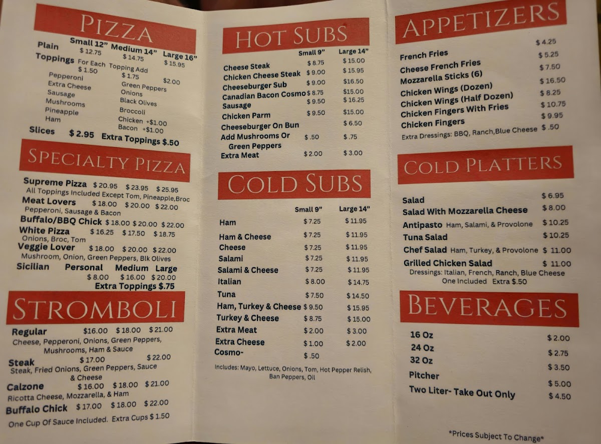 You’ll find classic Italian-inspired options like strombolis and calzones, complemented by simple but tasty appetizers such as crispy French fries, including a cheesy variation. Hot subs like cheesesteaks provide heartier choices for those seeking something warm and filling.